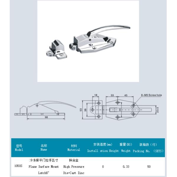 Industrial Refrigerator Door Handle 1050S Plain Surface Mount Latch 5" Zamac Images |